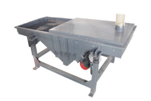 后,干净的橡胶颗粒进入振动筛。振动筛配备多层筛网,可根据客户需求更换不同孔径的筛网。设备运行时,颗粒通过筛网分层,从不同的出料口排出,每次可以同时产出三种不同尺寸的颗粒。例如: