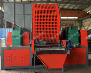 胎体被输送至撕碎机。撕碎机通过旋转刀辊将轮胎切割为不规则形状的胶块,尺寸范围大约在5-10厘米之间。这一阶段不追求细度,主要目的是将大块轮胎转化为便于后续处理的物料。